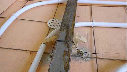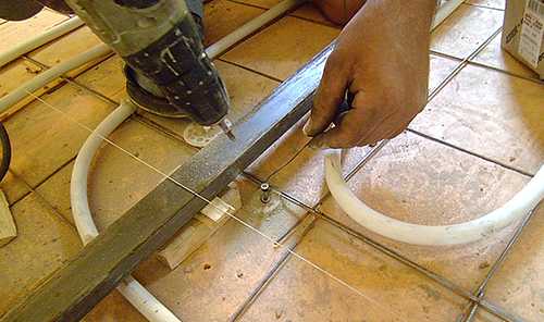 Следующий этап заключается в том, что вам необходимо осуществить установку монтажной планки. Она представляет собой своеобразную рамку, в которой располагаются направляющие с выемками, в которых будут располагаться трубы. На этом же этапе необходимо провести и армирование пола. В качестве арматуры на данном строительном этапе используются не очень длинные, тонкие прутья, можно даже использовать проволоку. Они укладываются в промежутках между трубами. Уже после этого можно приступать к бетону. Для этого вам понадобится: