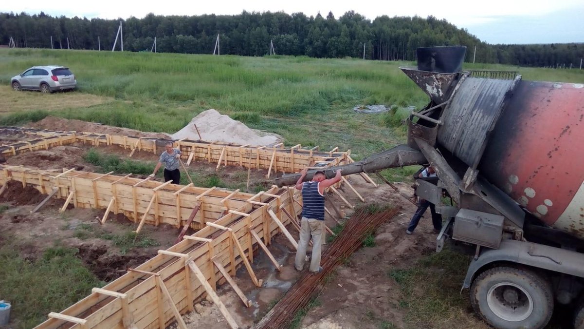 Изучив горы строительной литературы и собрав вместе все мнения и советы людей профессионально занимающихся фундаментами, я выработал свой план заливки фундамента с учетом своих требований к фундаменту и своих физических возможностей. В этой статье я расскажу поэтапно, как я заливал фундамент под дом своими руками бетономешалкой.