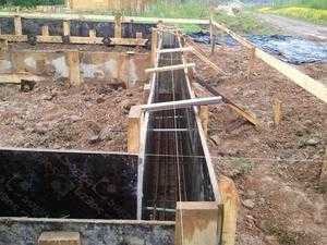 После установки арматурного каркаса следующим шагом будет изготовление опалубки. Для её приготовления потребуются доски с шириной около 10−20 сантиметров в зависимости от параметров фундамента и толщиной 2,5−4 см. Все доски должны быть жёстко между собой скреплены, а конструкция должна исключать появления дыр и зазоров во время заливки. В опалубку будет заливаться бетонный раствор, поэтому она должна быть прочной, чтобы вся масса оставалась на месте. Самые слабые места — это углы, поэтому их следует хорошо закрепить.