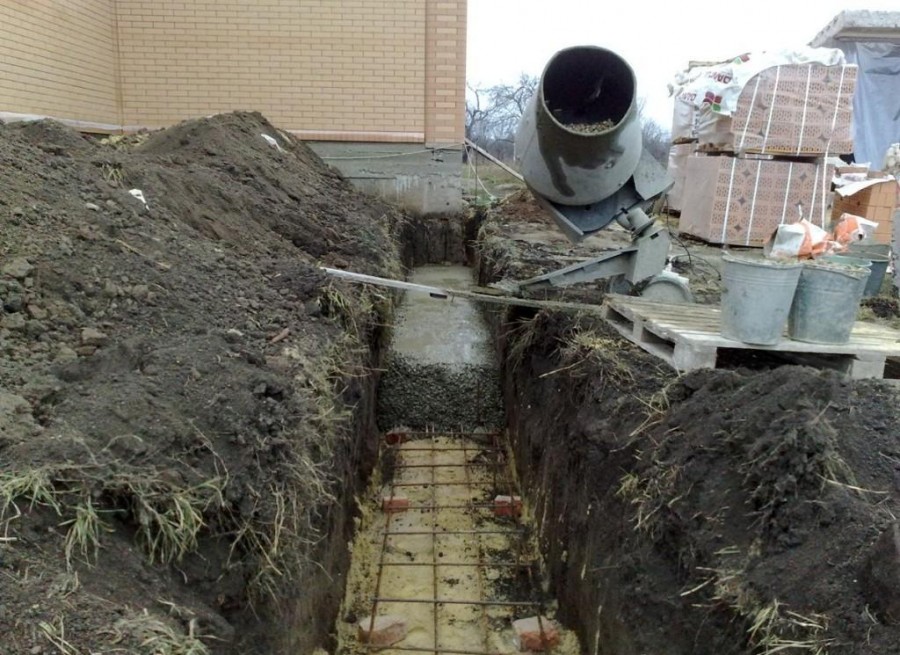 Только после того, как арматурный каркас будет монтирован в траншею, можно будет залить фундамент бетономешалкой. - Завершающий этап – заливка полученной конструкции бетонным раствором. В рамках заключительного шага заполняют тщательно подготовленное пространство бетонным раствором. Стоит отметить, что в ходе данного процесса выполняют утрамбовку материала.