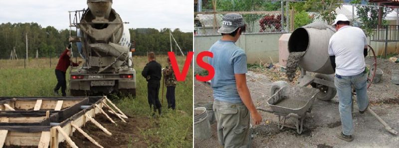 Данные методы несравненно имеют свой плюс, но, они теряют свою эффективность если площадь заливаемого вами фундамента имеет сравнительно большие размеры. Если вам требуется залить фундамент под дом, и вы решили остановиться на варианте с подвалом или с плитой площадью от 100 кв.м., то мешать раствор для фундамента бетономешалкой, и уж тем более руками, выглядит, по меньшей мере, неразумно.
