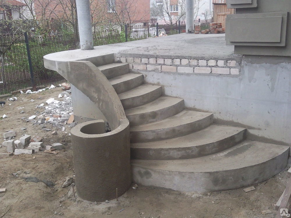 Часть владельцев выбирает П-образные межэтажные переходы. Они финансово выгоднее и просты в изготовлении. Кроме них существуют более красивые модели — это винтовые конструкции, но их монтаж потребует грамотного расчета. Строителям без опыта лучше начинать изготавливать простейшие изделия, к примеру, бетонное крыльцо.