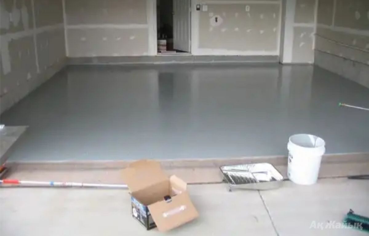 На пороге комнаты обязательно должно быть заграждение, чтобы смесь не выливалась за ее пределы. Через семь дней можно приступать к укладке напольного покрытия.Залитый финишный слой можно сделать самостоятельным напольным покрытием путем добавления красящих пигментов или нанесения рисунка.