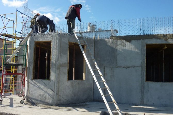 Первый несущий слой делается из плотного армированного бетона. Другой слой — теплоизолирующий. - Он расположен с наружной стороны и покрыт цементно-песчаным раствором.