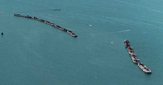 На многих кораблях из бетона еще сохранилась краска, ведь это памятники изобретательства военного времени.