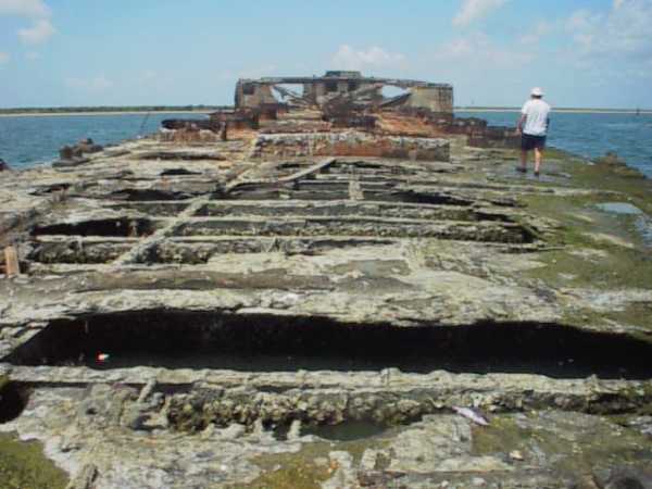 Остатки корабля СС Сельма в Сивольф парке в городе Галвестон.