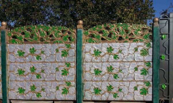 - постоянный уход. Ограждения подобного типа, требуют ежегодного ухода. В процессе эксплуатации на поверхности бетона, могут появиться сколы или микротрещины. В дальнейшем все эти изъяны скажутся на его внешнем виде;