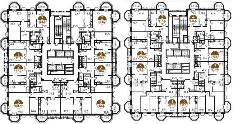 - улучшенные планировки с эркерами в гостиных;