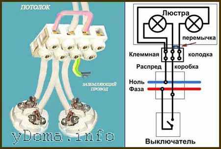Монтаж нескольких люстр на один выключатель