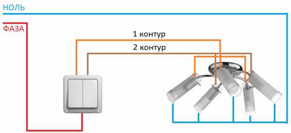 Подключение двухконтурной люстры к электросети с двумя и тремя проводами