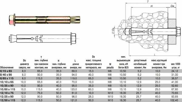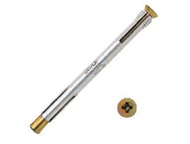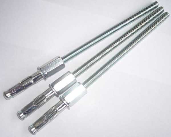На сегодняшний день он является наиболее популярным. Этот болт имеет различные размеры, что является безусловным плюсом, от двух до двенадцати сантиметров в длину, а в диаметре от четырех десятых до двух сантиметров. У них также имеется втулка, которая проходит по длине стержня. Внутри расположена резьба и головка, которая распирает втулку. При помощи этого элементарного механизма и фиксируется крепеж. Требует предыдущего просверливания отверстия в бетоне, так же, как и клиновой болт.