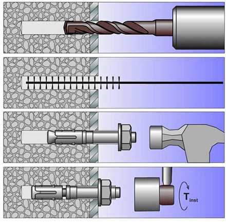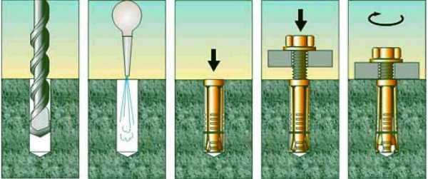 Как уже говорилось выше, фиксация болта анкерного типа внутри предварительно подготовленного отверстия может быть обеспечена двумя основными способами: