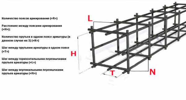 Лента в таком случае вяжется из двух параллельно установленных каркасов, стянутых поперечной арматурой. Количество стержней на каркас зависит от его размеров, а также выбранного шага.