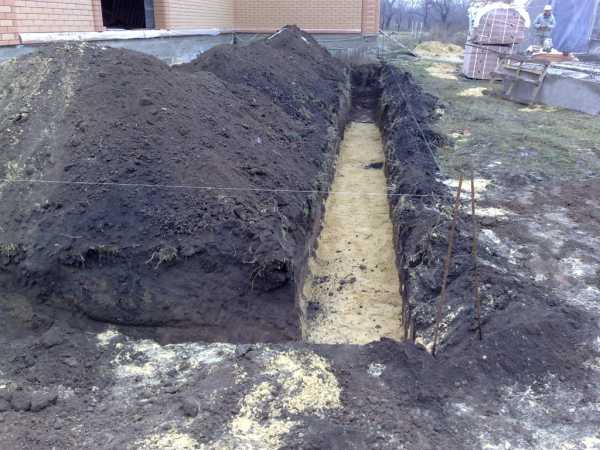 После того как мы подровняли и подчистили траншею до твердого грунта необходимо сделать песчаную подушку.
