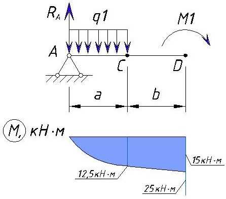 Для более точного построения линии параболы на данном участке можно найти значения момента для промежуточных положений сечения, например при z2=0,5м.