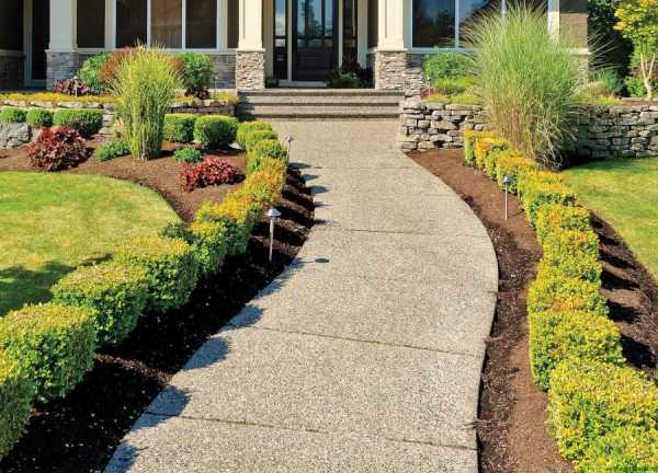 Чтобы придать тропинке оригинальность и изысканность, как это представлено на фото бетонных дорожек, необходимо воспользоваться разнообразной технологией декорирования:
