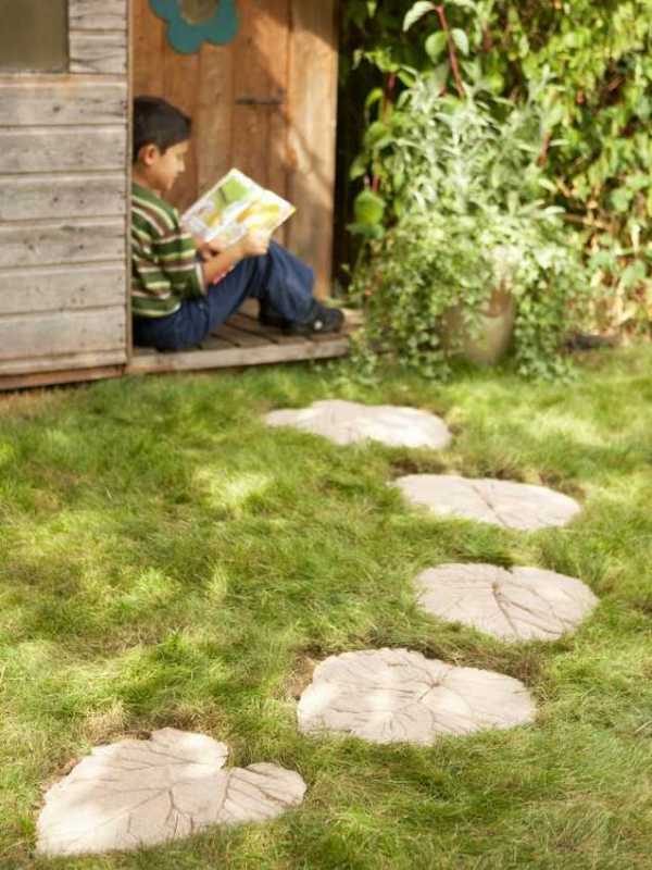 В нескольких местах я встречала подобные садовые дорожки, выполненные из бетона, на поверхности которых я видела как будто отпечатки окаменелостей — в основном это были листья разного размера и формы. Эта идея мне очень понравилась — ведь ее вполне возможно осуществить и в дизайне дорожек на своей даче, и все это можно будет сделать самостоятельно.