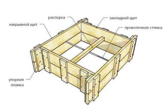 Кирпичный кессонПериметр заливаемой плиты ограждается при помощи досок шириной 200 – 250 мм, сшиваемых между собой по углам и закрепляемых к внешней плоскости стен. Отверстия ограничиваются при помощи металлических отрезков труб соответствующего диаметра или свернутых в виде цилиндров полос жести, ширина которых составляет 150 – 200 мм.