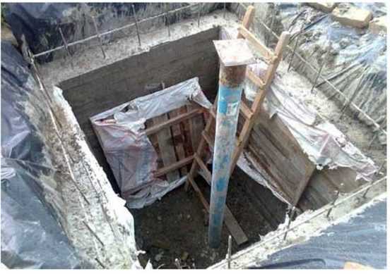 Готовый металлический кессон в котлованеМонолитные бетонные кессоны