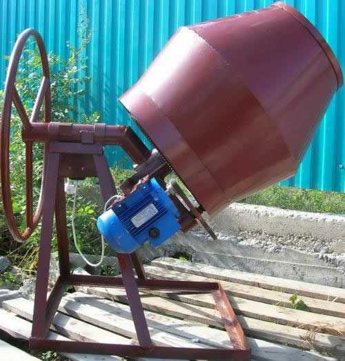 Внешне это оборудование напоминает крупную бочку с открытым верхом, которая поставлена на раму под небольшим наклоном. Привод оборудования может быть и автоматическим, и ручным.