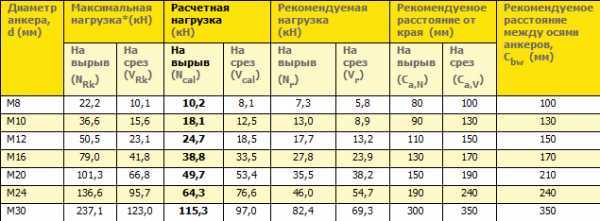 - Вырывающая сила в бетоне — 10,5…18,3 кН.