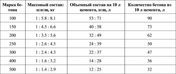 Кроме вяжущего понадобится очищенный щебень, речной песок и вода. Технологическая таблица пропорций бетона из цемента м500: