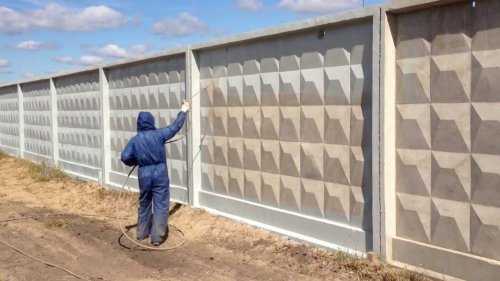 Бетон также активно применяется для возведения сооружений. Чтобы улучшить внешний вид конструкции и обеспечить ее долговечность, необходимо ее окрашивание. Процесс его проведения демонстрирует видео: покраска бетонного забора.