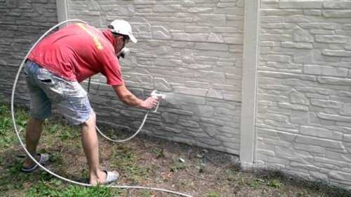Для человека, хоть немного знакомого с малярными работами, покраска бетонного забора не представляет никакой сложности. Конечно, процесс этот отличается трудоемкостью, но при наличии подходящего оборудования вы сможете легко обеспечить отличный результат (читайте также статью «Стяжка из полистиролбетона: самостоятельное утепление основания»).