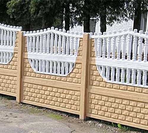 - Декоративные элементы секций, выкрашенные в белый цвет, будут сочетаться практически с любыми оттенками ограды.