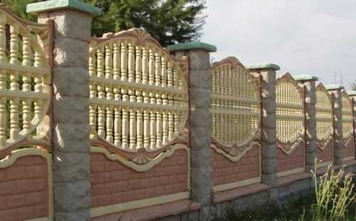 Бетонный забор производят из качественного цемента, придавая секциям различные формы. Цвет неокрашенного ограждения – серый и унылый. Чтобы оживить общий вид придомовой территории, используют богатую палитру красок. Главное условие при выборе цвета – сочетание с общей архитектурной композицией.