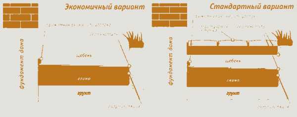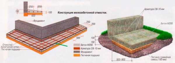 Она представляет собой мощеную полосу шириной от 20 см до 1,2 м, примыкающую к фундаменту или цоколю здания.