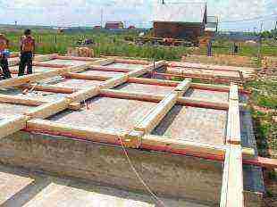 Для начала осматриваем фундамент и при обнаружении неровностей, углублений производим работы по их заделыванию. Это касается фундаментов ленточного типа. Если же фундамент бетонный, то потребуется заделать стыки между блоками. Все работы производятся с использованием цемента.