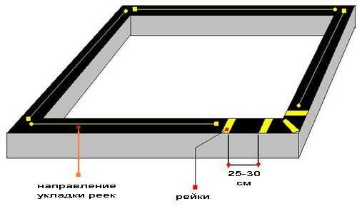 - Рейки предназначены для образования зазора между венцом и фундаментом, благодаря им предотвращается загнивание нижнего бруса.