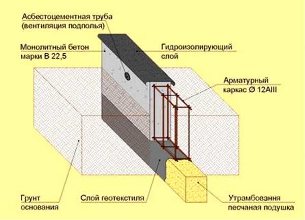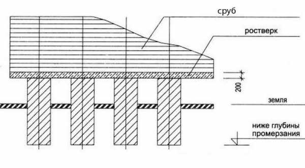 Схема фундамента с гидроизоляцией под дом из сруба.