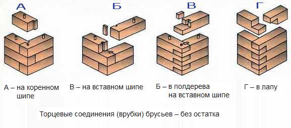 Те, кто купил профилированный брус, будут соединять его тем образом, который предполагает профиль. Если же вы запаслись бюджетным вариантом, вам предстоят плотницкие работы по выборке древесины на торцах для соединения бруса в углах. Вариантов может быть несколько.