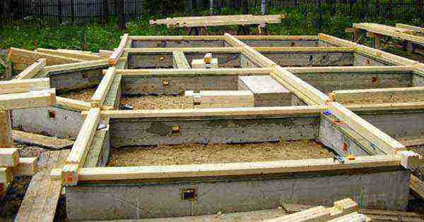 Дом из бруса рекомендуется строить на ленточное основание, высота которого составляет 0,5 м над почвой.