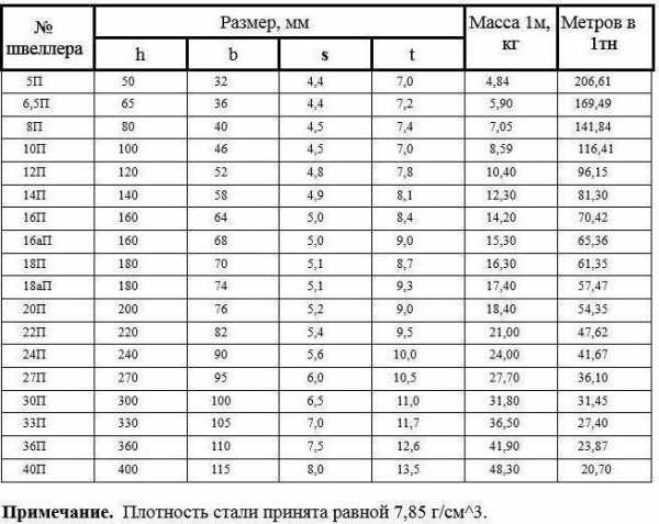 В таблице ниже приведены параметры швеллеров (У) с уклонными гранями. В этой таблице также указаны параметры швеллеров (П) с параллельными стенками.