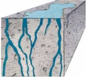 Вещество добавки оседает на внутренних стенках капилляров и при взаимодействии с любым количеством влаги, кристаллизуется и закупоривает проход для воды. Таким образом, трещины или пустоты заполняются, делая невозможным дальнейшее разрушение. Бетон перестает пропускать влагу, что предотвращает вымывание извести из бетона, сохраняя его прочность.