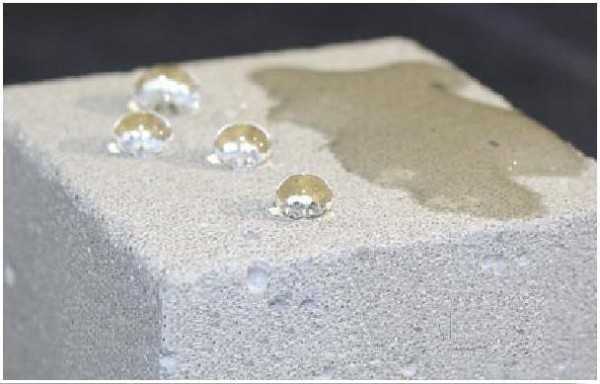 Как сделать гидрофобный бетон из обычного рассмотрим на примере наружных стен дома из газобетонных блоков. Газобетон — вид пористого материала, благодаря своей ячеистой структуре обладает низкой влагостойкостью. В результате, наружные стены без дополнительной обработки при продолжительном контакте с водой (осадки), быстро разрушаются.