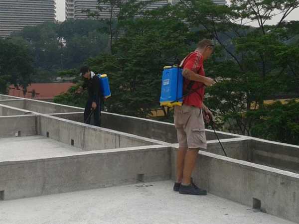 - Далее переходим непосредственно к работе с основанием. Тут нам нужно снять наплывы бетона на конструкции, а также обработать обычным цементным раствором швы. После этого нужно будет расплавленным битумом обработать основание с помощью шпателя или валика. Накладываем материал слоем до 3 мм. Обязательно работаем при этом на свежем воздухе и проводим испытания в строгом соответствии с рекомендациями производителя.