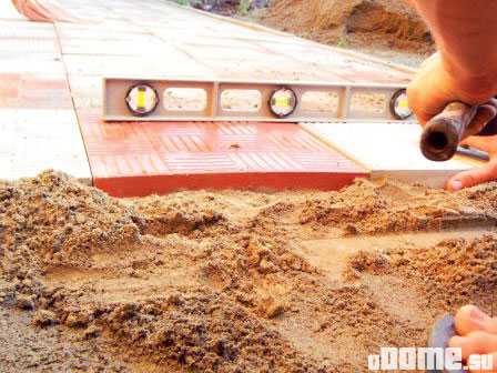 ΠΠ΄Π½ΠΎ ΠΎΡΠ»ΠΈΡΠΈΠ΅ ΡΠΎΡΡΠΎΠΈΡ Π² ΡΠΎΠΌ, ΡΡΠΎ ΡΠ°ΠΊΠΈΠ΅ Π΄ΠΎΡΠΎΠΆΠΊΠΈ, ΠΊΠ°ΠΊ ΠΏΡΠ°Π²ΠΈΠ»ΠΎ, Π²ΡΠΊΠ»Π°Π΄ΡΠ²Π°ΡΡ Π½Π° ΡΠ΅ΠΌΠ΅Π½ΡΠ½ΡΠΉ ΡΠ°ΡΡΠ²ΠΎΡ. ΠΡΠΈ ΡΡΠΎΠΌ Π²ΡΡΠ°Π²Π½ΠΈΠ²Π°ΡΡ Π½ΠΈΡΠ΅Π³ΠΎ Π½Π΅ Π½ΡΠΆΠ½ΠΎ, ΡΠ°ΠΊ ΠΊΠ°ΠΊ ΠΊΠ°ΠΌΠ΅Π½Ρ ΠΈΠΌΠ΅Π΅Ρ Π½Π΅ΠΏΡΠ°Π²ΠΈΠ»ΡΠ½ΡΡ ΡΠΎΡΠΌΡ. ΠΠ΄ΠΈΠ½ΡΡΠ²Π΅Π½Π½ΠΎΠ΅ Π·Π° ΡΠ΅ΠΌ Π½ΡΠΆΠ½ΠΎ ΡΠ»Π΅Π΄ΠΈΡΡ, ΡΡΠΎΠ±Ρ Π²ΡΠ΅ ΠΊΠ°ΠΌΠ½ΠΈ Π»Π΅ΠΆΠ°Π»ΠΈ Π² ΠΎΠ΄Π½ΠΎΠΉ Π³ΠΎΡΠΈΠ·ΠΎΠ½ΡΠ°Π»ΡΠ½ΠΎΠΉ ΠΏΠ»ΠΎΡΠΊΠΎΡΡΠΈ. Π ΡΡΠΎΠΌ ΡΠ»ΡΡΠ°Π΅ ΠΏΠΎΠ²Π΅ΡΡ Π½ΠΎΡΡΡ Π΄ΠΎΡΠΎΠΆΠΊΠΈ ΠΏΠΎΠ»ΡΡΠΈΡΡΡ ΠΏΠΎΡΡΠΈ ΡΠΎΠ²Π½ΠΎΠΉ.