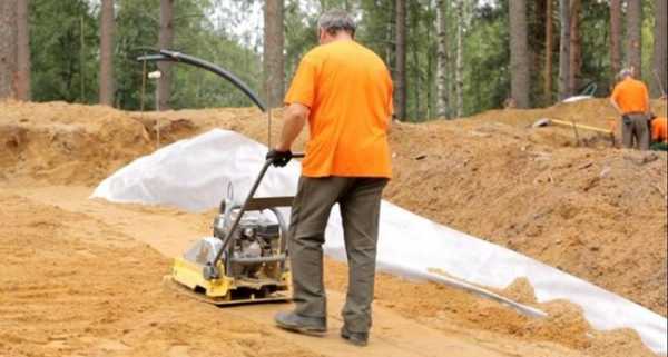 - Тщательным образом производят трамбовку грунта на дне траншеи. Для этих целей применяют виброплиту.