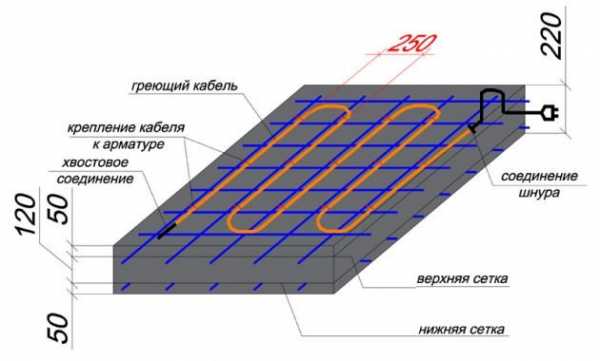 Схема обогрева бетона с помощью кабеля