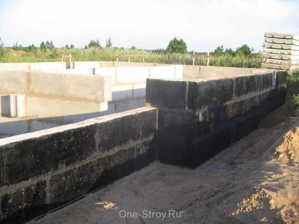 При всей плотности блоков ФБС, их следует защитить от воздействия осадков и влаги от грунта. Для этого как наружные, так и внутренние стенки фундамента обрабатываются гидроизолирующим составом (мастикой).