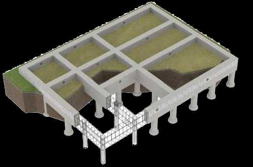 - траншея внутри траншеи, котлована за подошвой плит ФЛ (опирать на дрены несущие конструкции здания запрещено)