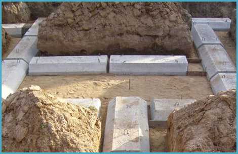 Монтаж сборного ленточного фундамента из блоков ФБС