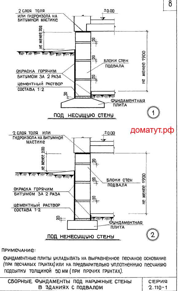 - Строительство прерывистого фундамента в зданиях с подвалом.