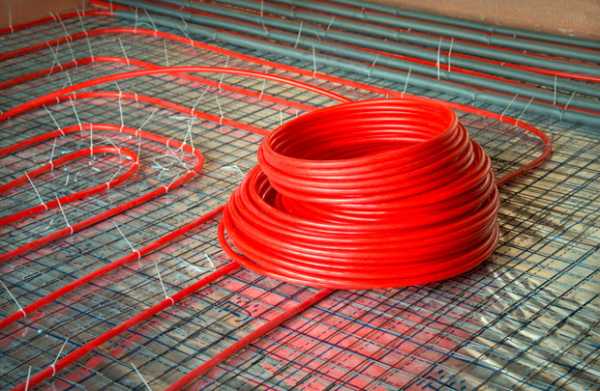 На уложенный теплоизолятор монтируют систему «теплый пол». При монтаже электрического теплого пола необходимо надежно изолировать контакты от воздействия влаги. Поверх смонтированной системы наносят выравнивающую бетонную стяжку.