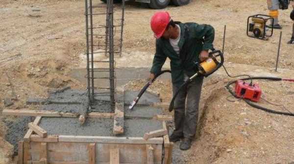 Так выглядит погружной вибратор для бетона в работе