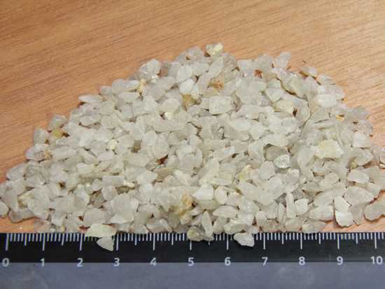 - Кварцевый – получается путем дробления кварца и дальнейшего его просеивания. Используется в качестве эффективного фильтрующего средства при выполнении декоративной облицовки зданий, сооружений и т.д.